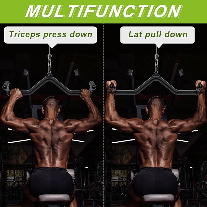 - Ergonomic V Bar Design: This cable attachment allows you to change the way you work out your back muscles and make your exercise more effective. It eliminates wrist pain and tennis elbow while strengthening your obliques, latissimus dorsi, scapulae, and other back muscles