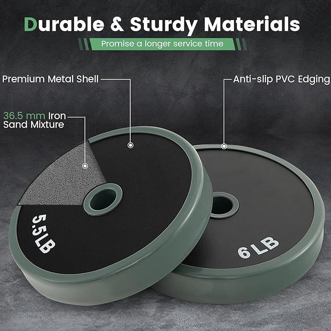 - Silent Workout: Featuring with soft PVC edging, all weight plates are well protected and avoid noise when accidentally hit together or drop on floor, protecting your house and leaving you no worries about bothering neighbors.