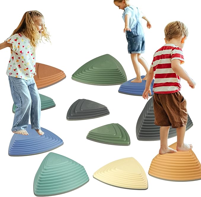 - 【Indoor & Outdoor Kids Fitness Equipment】: ❤ 11 PCS Set kids stepping stones come in various sizes and heights, allowing for an unlimited number of play styles as children grow up. Each set of six pieces includes 5 small, 3 medium, 2 large, and 1 huge stone, allowing kids to try different games, obstacle courses, and configurations