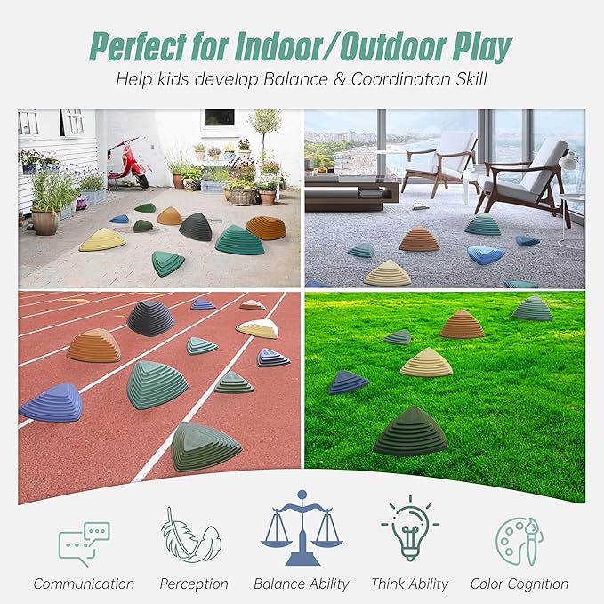- 【Premium Material & Easy to Store】: ❤ Each Balance Stepping Stone is expertly crafted of durable plastic to provide long-term durability and reliable use. Suitable for indoor and outdoor play, you can place them on carpet, tile, and grass. When the fun comes to an end, you can stack them together for super-quick, convenient, and space-saving storage.