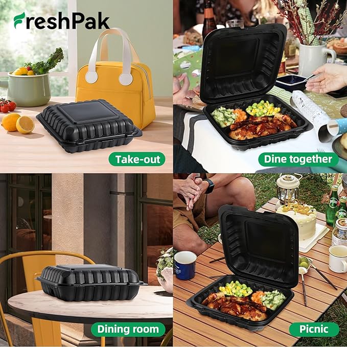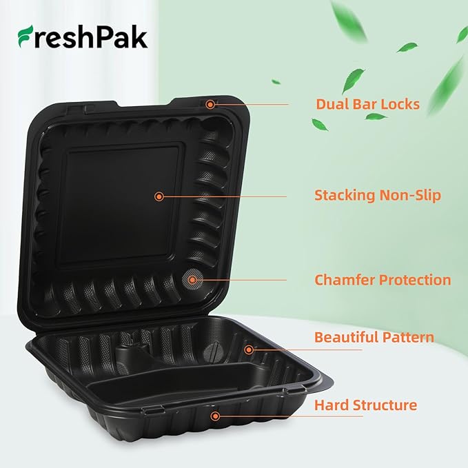 - →MULTIPLE COMPARTMENT OPTIONS: Tailored to your meal organization needs,the 3 compartment food container comes in various compartment options.Whether you prefer separate sections for your ingredients or a single spacious compartment,these clamshell take out containers have durability and cater to your diverse meal prep styles