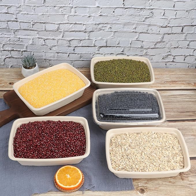 40 oz Rectangle Disposable salad bowls with lids, Sugarcane Fibers Bowls take away food containers Plant Fibers Freezer Safe 50 Pack