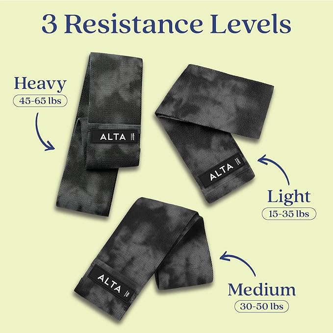 ALTA Booty Bands for Women - Premium Non-Slip Fabric Resistance Bands for Working Out - Cloth Resistance Bands for Legs, Fabric Exercise Bands, Leg Bands for Working Out Women, Looped Hip Bands Set