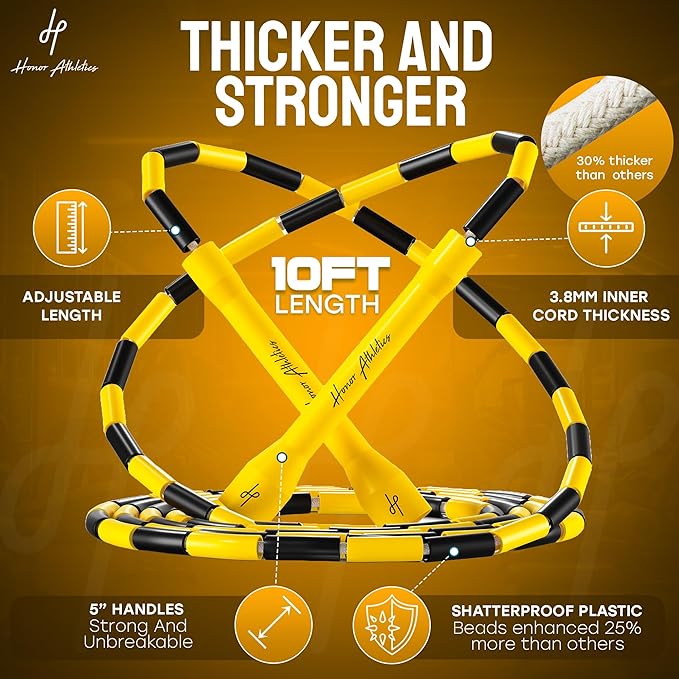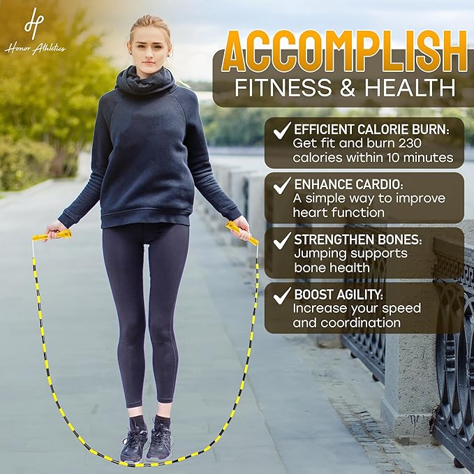 - β Premium Craftsmanship π¨ Whether indoors or outdoors, the Honor Athletics jump rope guarantees consistent and lasting performance. Designed with 5" durable plastic polymer handles and complemented by 1" impact-resistant beads, our jump rope meets the high standards set by exclusive jump rope enthusiasts. Truly a testament to premium craftsmanship. Enduring Performance in Any Setting