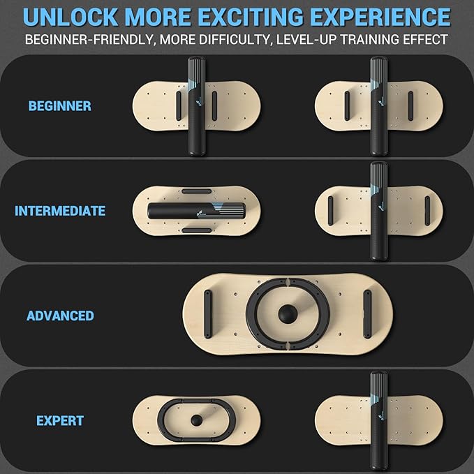 - 【7 Modes & Adjustable Stoppers】Explore 7 unique challenge modes with the included roller and 2.8” ball. Four magnetic removable stoppers allow for quick, tool-free adjustments, making it the ultimate balance boards for adults seeking progressive workouts from beginner to expert.