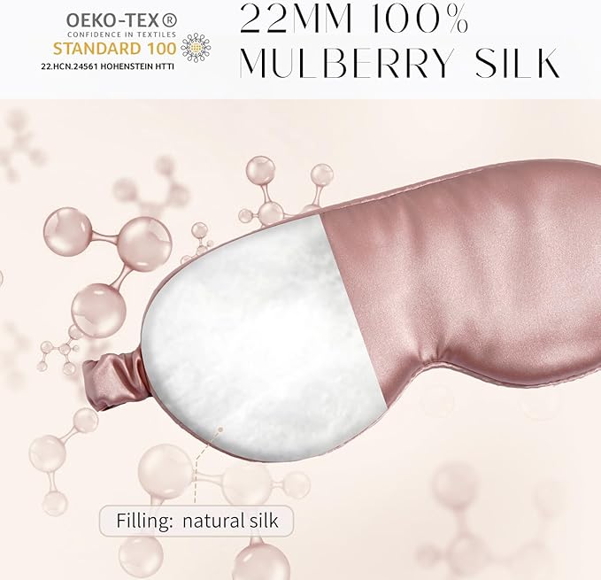 - 【LUXURY 3D SILK SLEEP MASK】Our exquisite 3D silk eye mask is designed for comfort. It is made of 22 momme mulberry silk on both sides, filled with 100% silk instead of satin, providing a luxurious and skin friendly touch. Experience the natural happiness of silkworms and enjoy the most peaceful sleep.