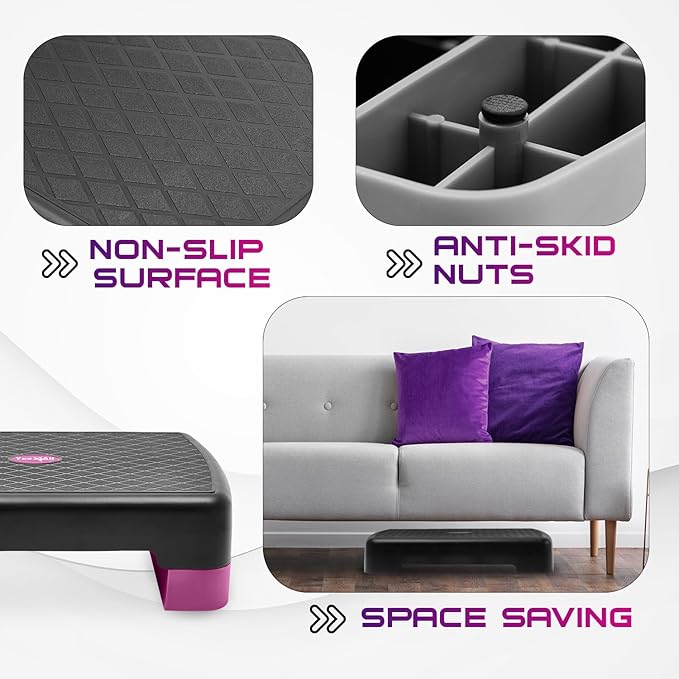 - MULTI BENEFIT WORKOUT EQUIPMENT: Offer a multitude of benefits such as building strength, maintain your body weight, tone and elevating flexibility; The mini step riser is ideal for all ages & fitness levels