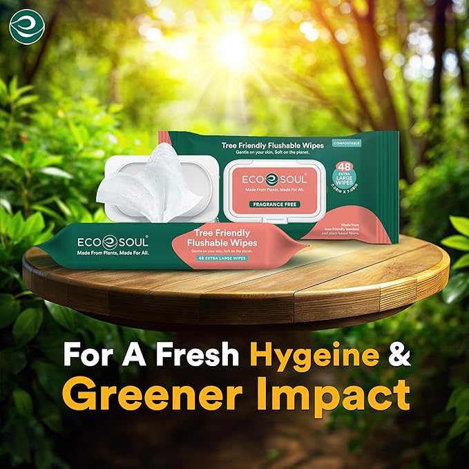 - ππππππ πππππ ππππ πππ : ECO SOUL Flushable Adult Wipes, eco-friendly with bamboo, septic-safe 4 packs of 48 (192 total) for lasting convenience.