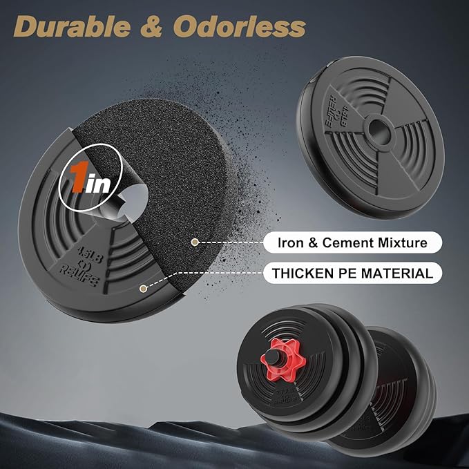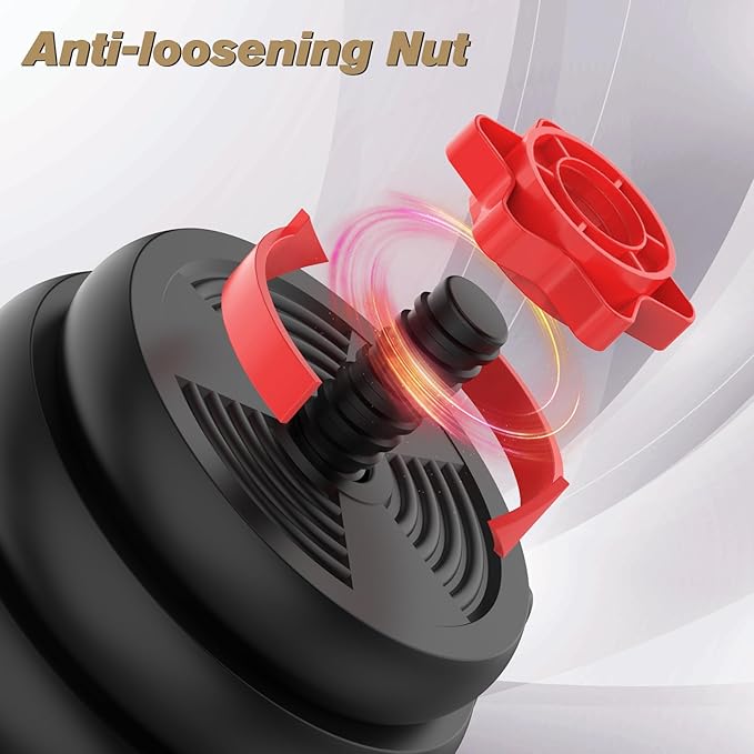- RELIABLE NUTS ATTACHED, Equipped with thickened and smooth nuts, which are easy to twist, the weights dumbbells set won’t hurt your hands when assembling or using.