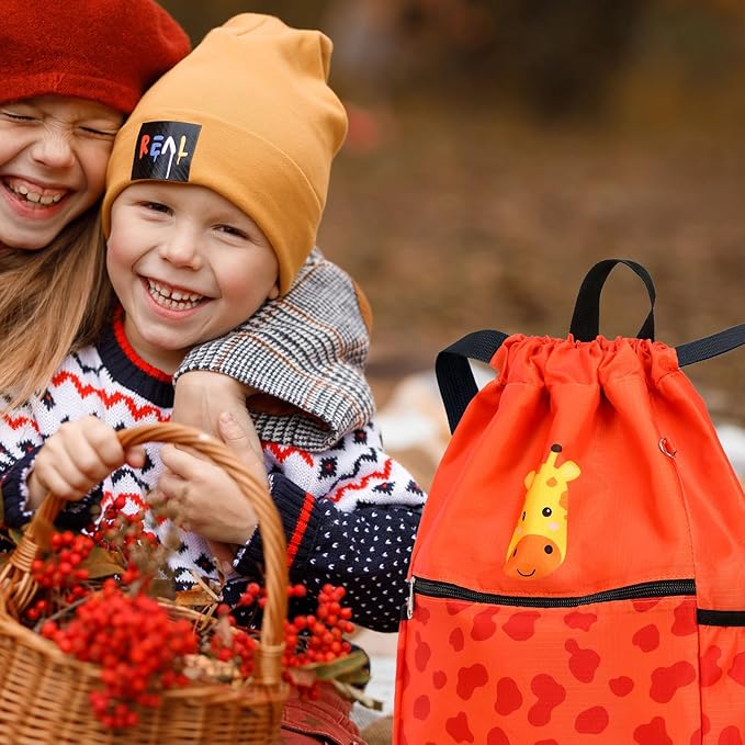 Giraffe Drawstring Back Kids Drawstring Bags Rainbow Gym String Backpack Bulk for Girls Boys Dance Waterproof Nylon Sports Giraffe One Size Orange