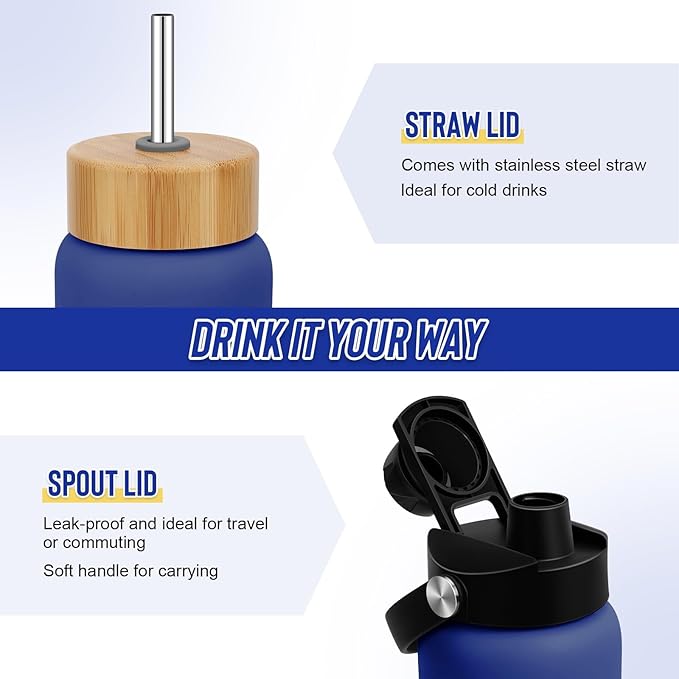 - DUAL LID VERSATILITY AND CUP HOLDER DESIGN: Our motivational 1L glass water bottle comes with both a spout lid and a straw lid. Whether you need it as a stylish tumbler or a leak-proof cute clear water bottle, our product is designed to meet your needs on various occasions, and it conveniently fits in cup holders.