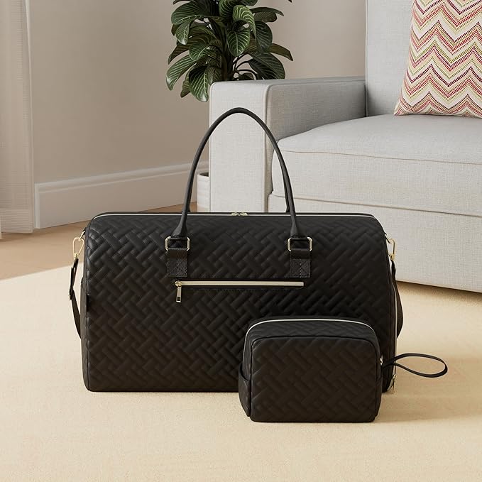 - CAPACITY UPGRADE WEEKENDER BAG - To accommodate more items, we have increased the length and height of weekender bags for women, measuring 23.4*11*11.6 inches. Spacious enough to hold 3-5 days of daily essentials such as clothes, shoes, toiletries, laptop, Ipad and other items. Very suitable for people who travel for long periods of time and long business trips.