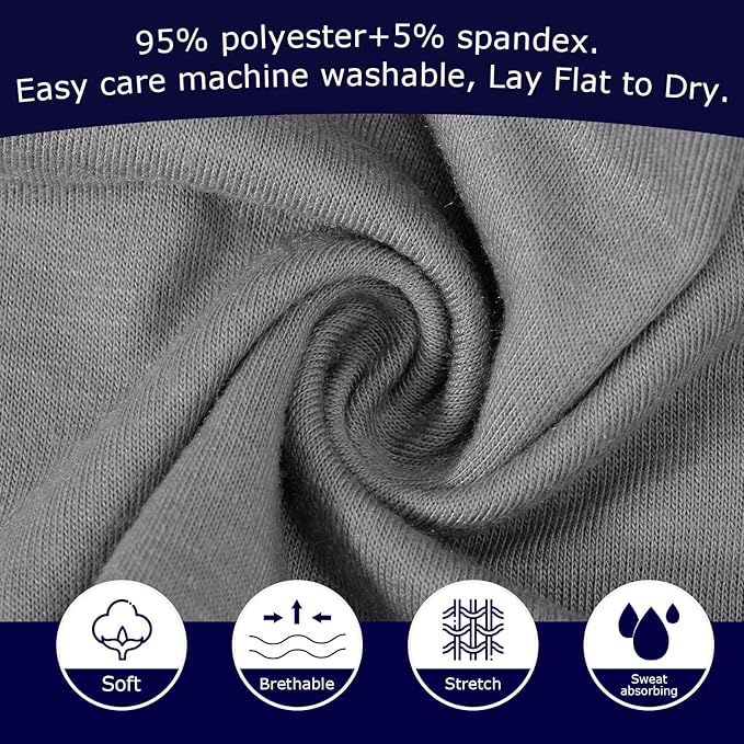 - 【Premium Material】95% polyester, 5% spandex. Easy care machine washable, Lay Flat to Dry. Provide Excellent Performance for Absorbency, Wicking, Durability and Abrasion Resistance.