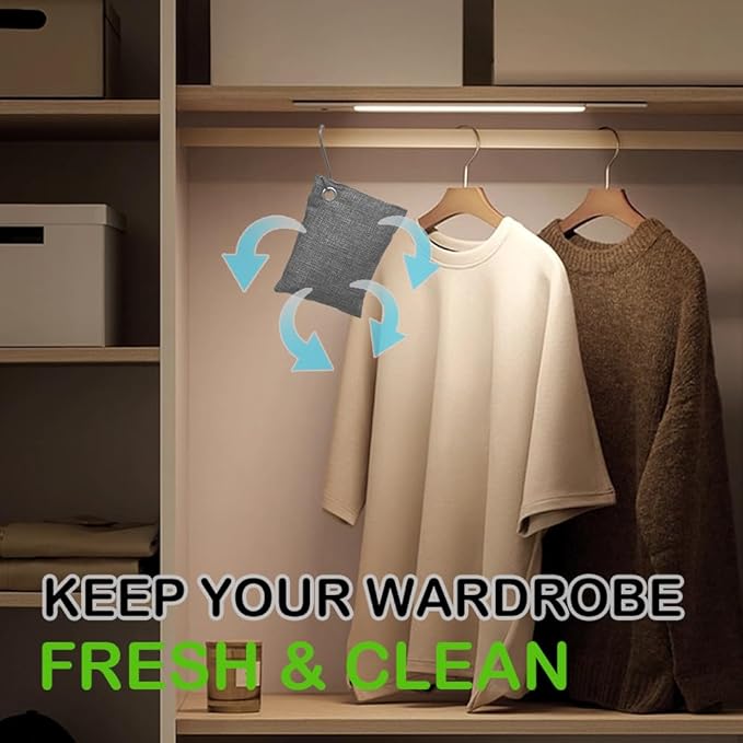 - 【EASY TO USE】 The bamboo charcoal sealed in our beautifully stitched linen bag, each bag size 6.5 inch * 3 inches, it can be easy hanging on a hanger or hook.you can put it on any area you want.