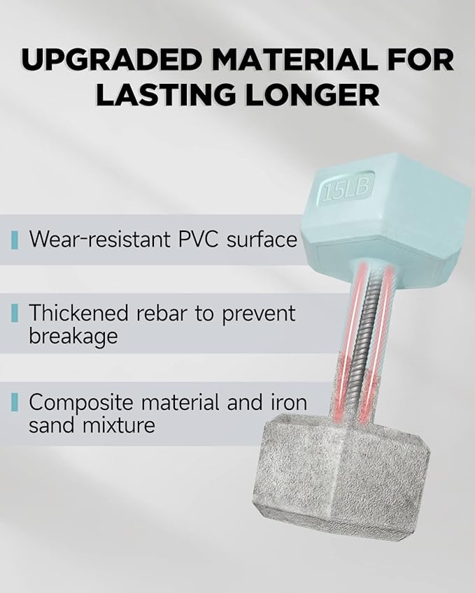 - [NON-SLIP HANDLE] By having ergonomic handles with anti-slip patterns, the dumbbells fit your palms better during exercise without worrying about slipping.