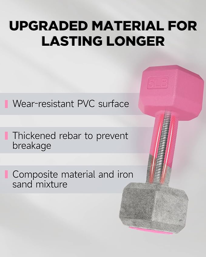 - [NON-SLIP HANDLE] By having ergonomic handles with anti-slip patterns, the dumbbells fit your palms better during exercise without worrying about slipping.