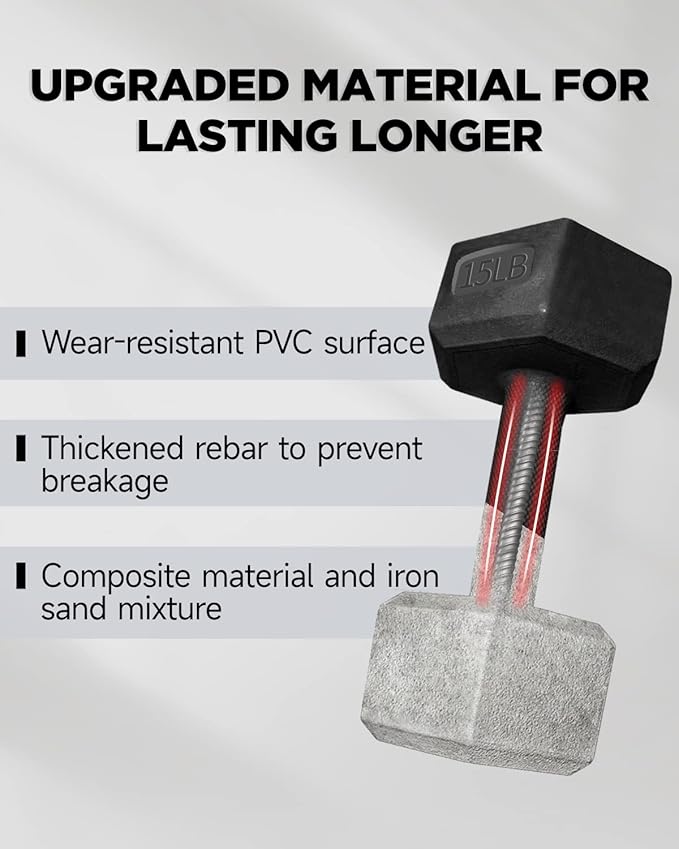 - [NO SCROLLING] Our dumbbells feature a hexagonal design with a textured PVC surface so you don't have to worry about rolling while stacking and doing floor moves.