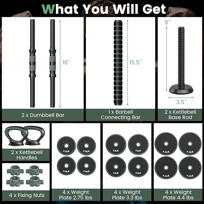 - Ergonomic Details for Better Training: With anti-skid TPR and diamond texture, the dumbbell bars and kettlebell handles are ant-slip and comfortable to grip. Meanwhile, NBR foam covered barbell bar ensures safe weightlifting sessions.