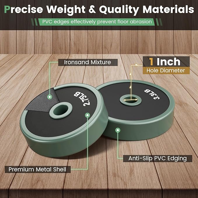 - Silent Workout: Featuring with soft PVC edging, all weight plates are well protected and avoid noise when accidentally hit together or drop on floor, protecting your house and leaving you no worries about bothering neighbors.