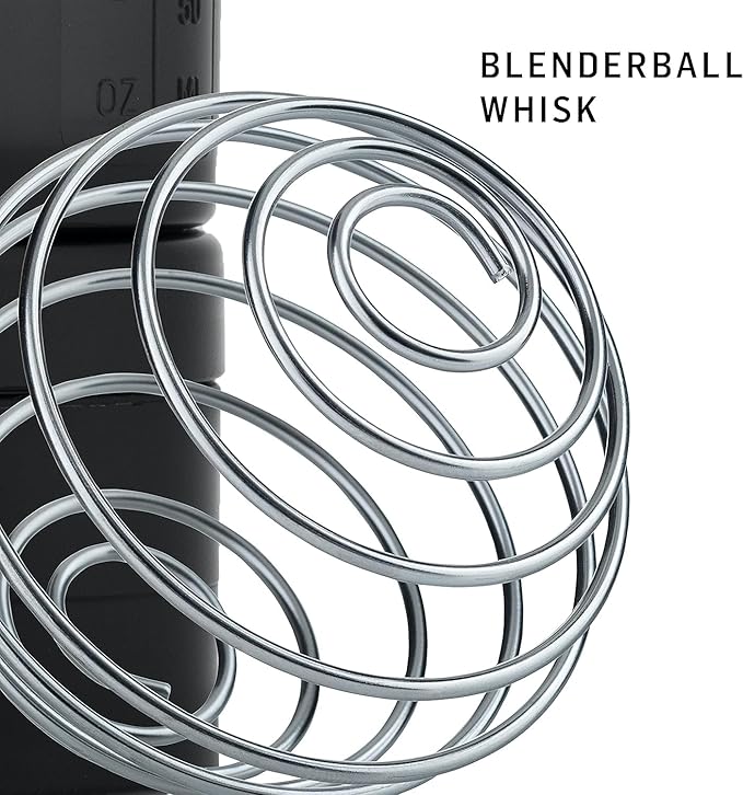 - Includes 22-oz. capacity BlenderBottle shaker (markings to 16 oz.), 150 cc jar, 100 cc jar, pill organizer, and patented BlenderBall whisk
