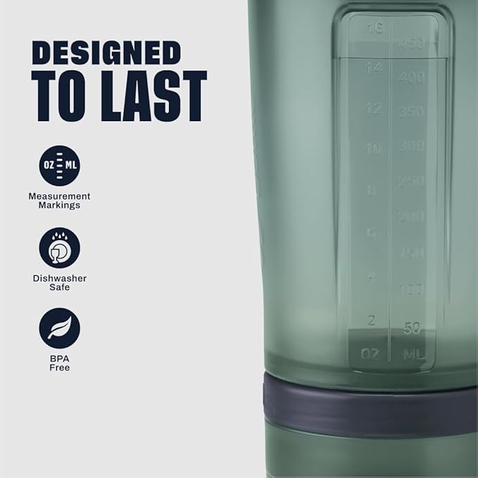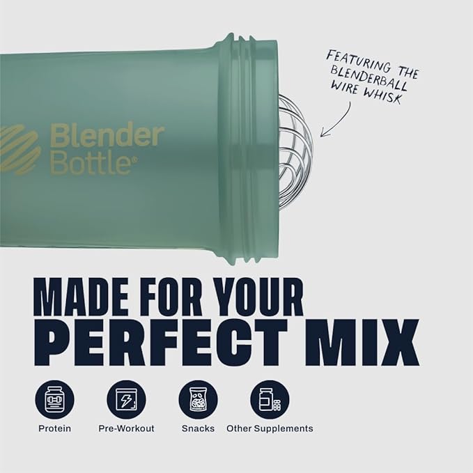 - Includes 22-oz. capacity BlenderBottle shaker (markings to 16 oz.), 150 cc jar, 100 cc jar, pill organizer, and patented BlenderBall whisk