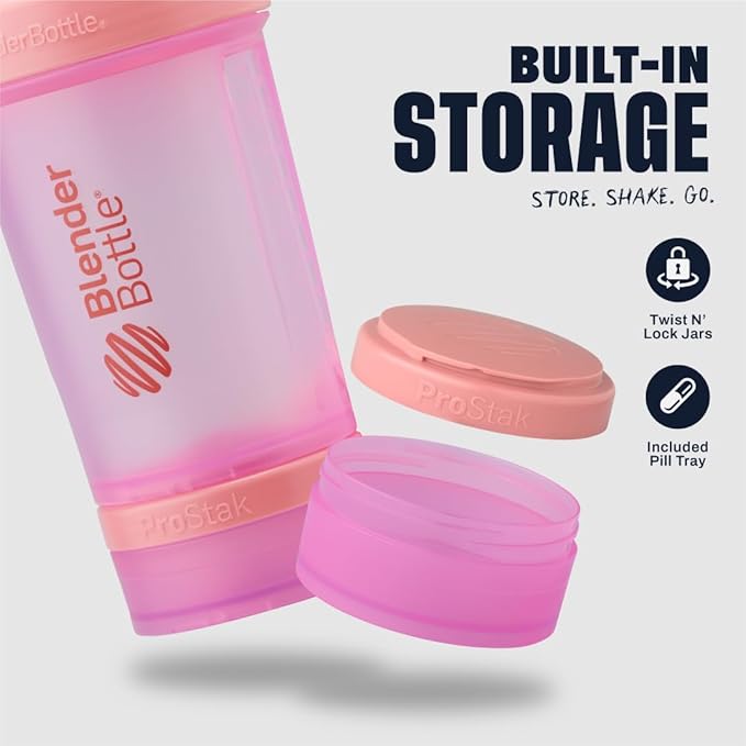BlenderBottle Shaker Bottle with Pill Organizer and Storage for Protein Powder, Classic V2 ProStak System, 22-Ounce, Pink