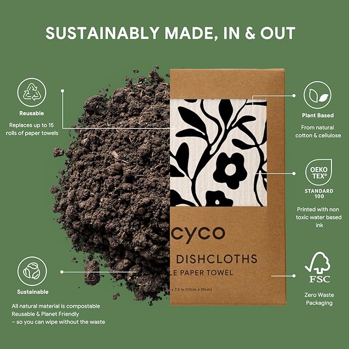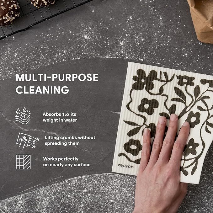 - Plant-Based & Biodegradable: Our 8” x 7” swedish dishcloth is 100% biodegradable, vegan, and free from harmful chemicals. Made from FSC certified cellulose and cotton fibers, it can decompose naturally in just 6-8 weeks, making it your best conscious choice for a greener lifestyle.