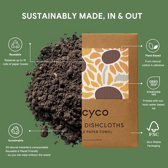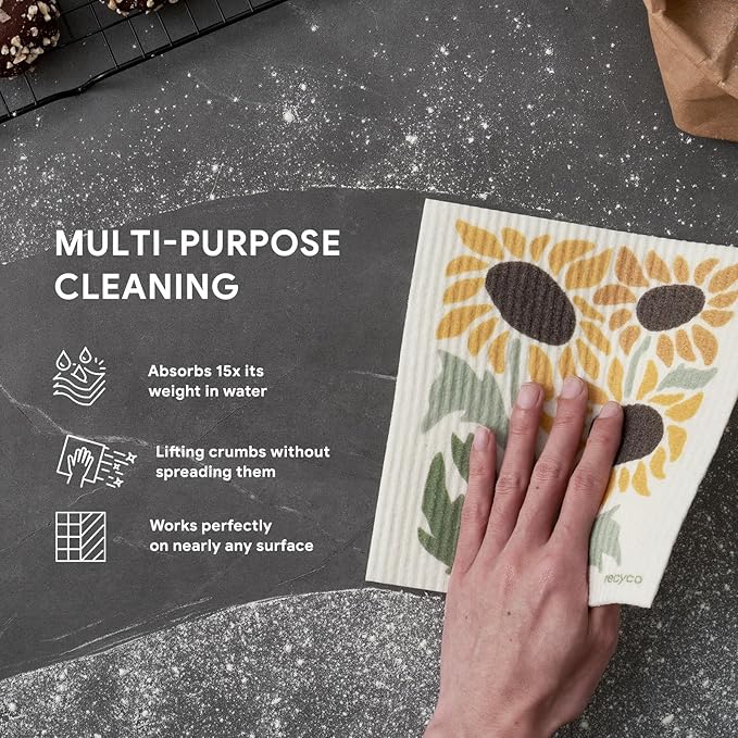 - Plant-Based & Biodegradable: Our 8” x 7” swedish dishcloth is 100% biodegradable, vegan, and free from harmful chemicals. Made from FSC certified cellulose and cotton fibers, it can decompose naturally in just 6-8 weeks, making it your best conscious choice for a greener lifestyle.