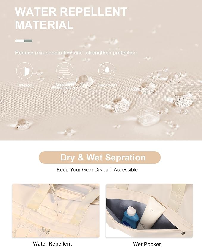 - 【Waterproof & Dry Wet Pocket】The bag is made from high-density waterproof material to repel water and keep the contents inside dry. The bag has a compartment designed specifically for separating dry items from wet ones like wet clothes or towels
