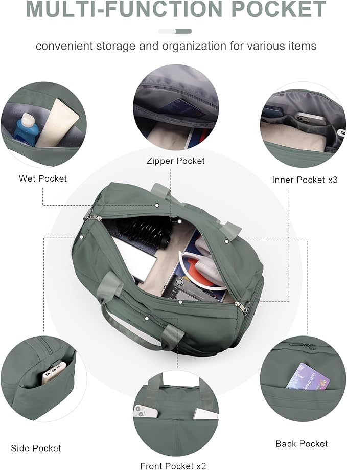 - 【Adjustable and Detachable Padded Shoulder Strap】The wekkend bag comes with an adjustable and detachable padded shoulder strap. This strap offers versatility in how you carry the small gym bag. You can wear it over your shoulder or across your body, and the padding helps make it more comfortable, especially when carrying the bag for extended periods.