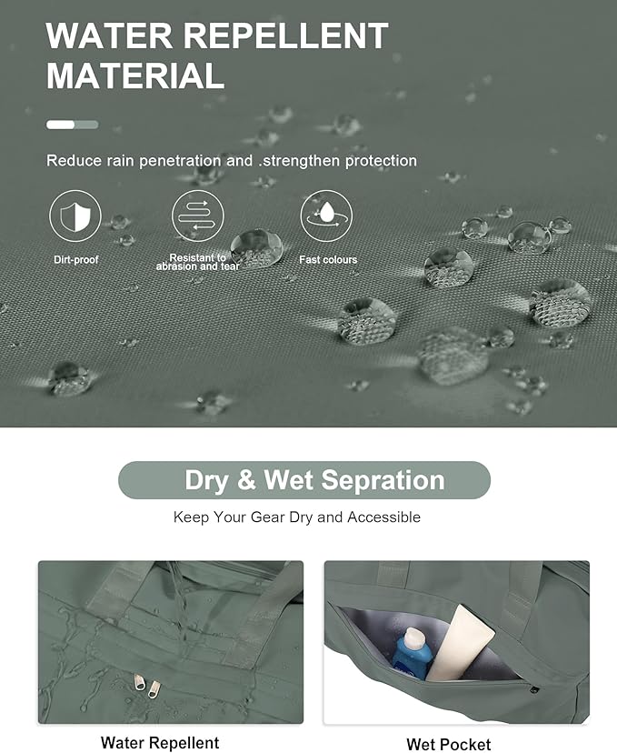 - 【Waterproof & Dry Wet Pocket】The bag is made from high-density waterproof material to repel water and keep the contents inside dry. The bag has a compartment designed specifically for separating dry items from wet ones like wet clothes or towels
