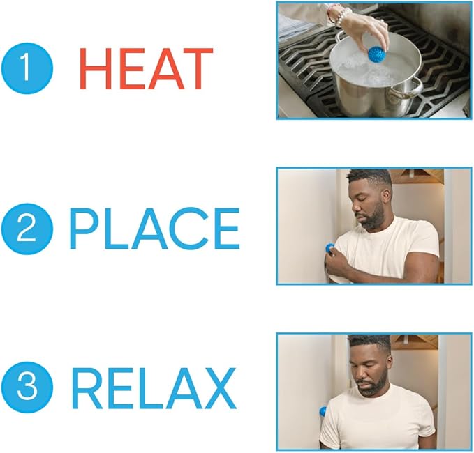 - [Revolutionary Heated Design] The world’s first patented heatable massage ball offers 30 minutes of soothing heat after a 10-minute boil. Heat expands tight tissue, calms the nervous system and feels fantastic! It relieves muscle & joint pain, improves mobility, reduces stress and relieves nerve, neck, back, hip, hand, shoulder, forearm, outer leg and feet pain.
