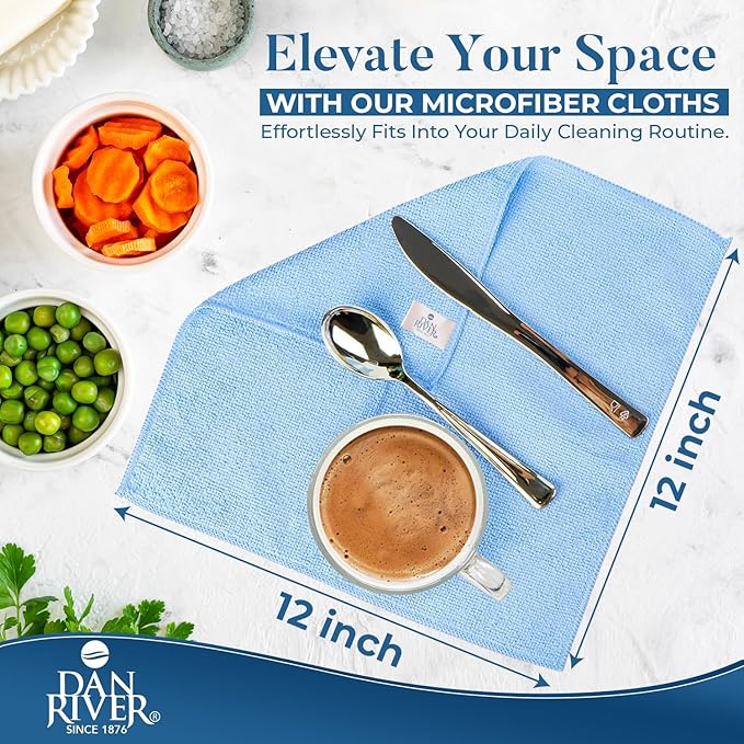 DAN RIVER 24-Pack Microfiber Towels โ Ultra Absorbent, Lint-Free & Streak-Free Rags for Cleaning House, Car & Kitchen - Must-Have Cleaning Essentials - 12" x 12" - Assorted
