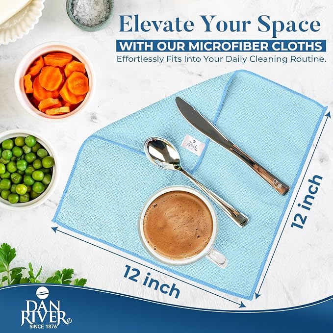 DAN RIVER 24-Pack Blue Microfiber Towels โ Ultra Absorbent, Lint-Free & Streak-Free wash Cloths Kitchen for Home & Car - Must-Have Cleaning Essentials - 12" x 12"