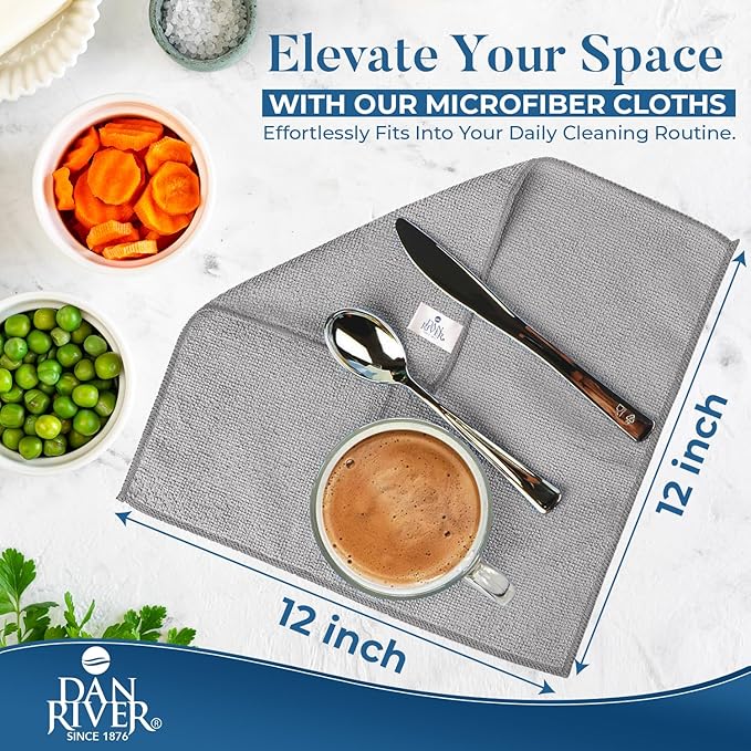 DAN RIVER 24-Pack Gray Microfiber Towels โ Ultra Absorbent, Lint-Free & Streak-Free Cleaning Cloths for House, Car & Kitchen - Must-Have Cleaning Essentials - 12" x 12"
