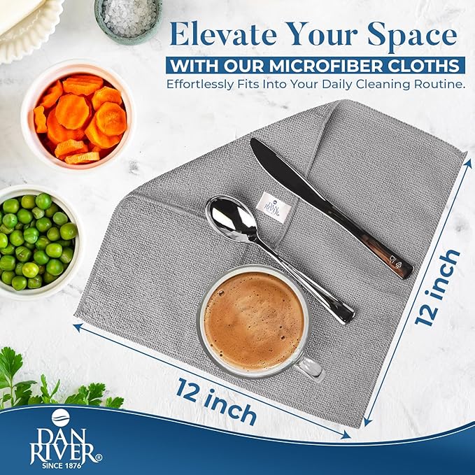 DAN RIVER 24-Pack Microfiber Towels โ Ultra Absorbent, lint Free Cloth & Streak-Free for Home, Car & Kitchen - Must-Have Cleaning Essentials - 12" x 12" - Gray White