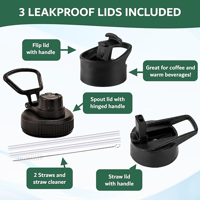 Travel Water Bottle with Carrying Bag, 3 Lids (Spout, Straw, Flip), and Bottle Brush; Leak Proof, Quality, Vacuum Insulated, Stainless Steel (Mixed Berry, 32 oz)