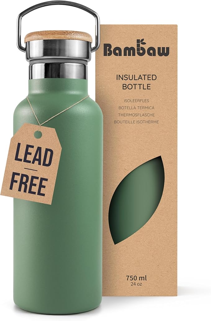 Bambaw 24 oz Insulated Water Bottle, Green Water Bottle Stainless Steel, Refillable Water Bottle, Dishwasher Safe Water Bottle, Metal Water Bottle No Straw, Double Walled Water Bottle – Sage Green