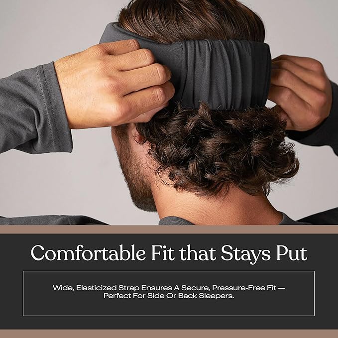 - Gentle Stretch Non-Tightening Design: Featuring a wide elastic band for a secure, comfortable hold, enhanced by silk’s natural texture to reduce slipping. This sleep mask minimizes light without tight restriction, offering a relaxed, comfortable fit