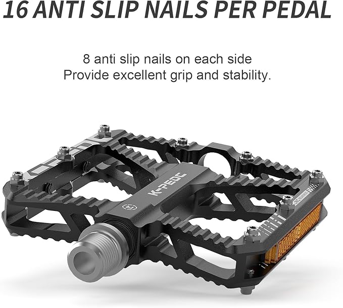 - STURDY and DURABLE: This bike flat pedals was made with CNC integration aluminum alloy material,give you a sense of security. The spindle was made of chrome-molybdenum steel material, which is stronger than ordinary steel and features better load-bearing performance