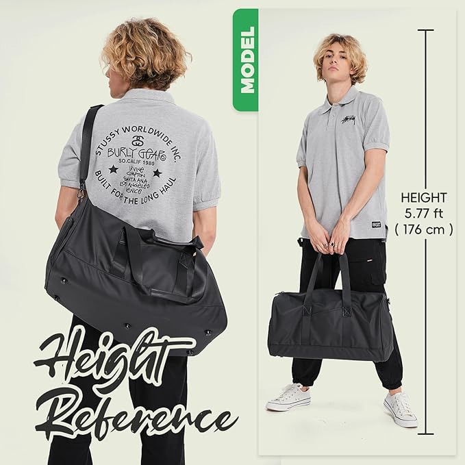- [Premium Material] This mens gym bag is made of premium durable water resistant fabric, it is soft and thickened, the lining with good breathability. This waterproof duffle bag just clean with a dry or wet cloth wipe