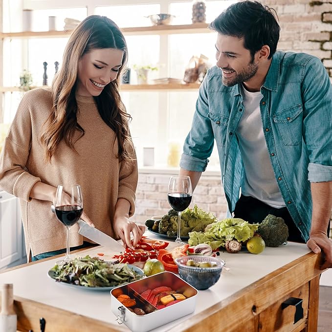 - Lockable Clips for Leak Proof: the metal lunch container is designed with lockable clips that firmly secures the lid in place, avoiding leaks and spills, even when you're on the go; This creates a reliable and practical food storage solution, allowing you to pack anything from saucy curries to juicy fruits without any leaks or messes