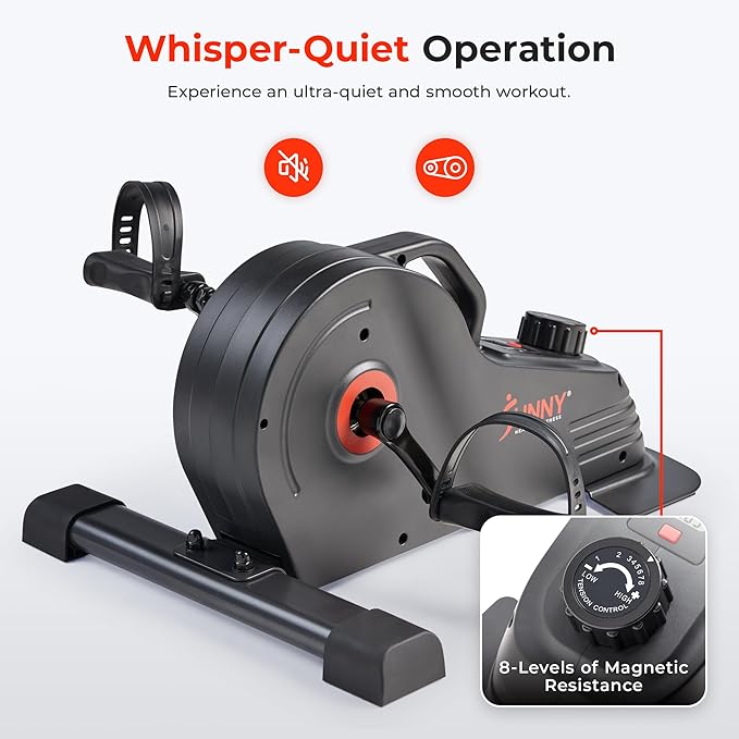 Sunny Health & Fitness Dual Function Under Desk Pedal Exerciser, Portable Indoor Cardio Mini Bike at Home, Arm/Leg Cycle for Seniors, Optional Magnetic, Motorized & Free SunnyFit App Bluetooth Connect