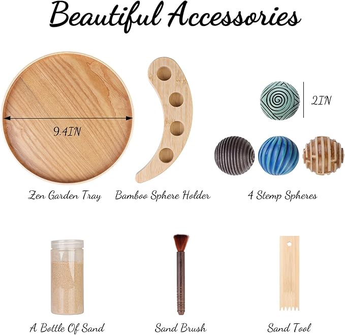 - ๐ฟ Customized tranquility: Immerse yourself in a personalized world of serenity with our Zen Garden Kit featuring four resin stamp spheres. This premium, quality crafted zen garden brings the essence of Japanese sand gardens to your space, offering a peaceful retreat for meditation, mindfulness, and stress relief.