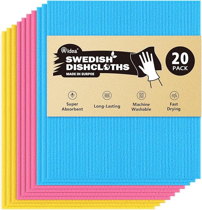 AIDEA Swedish Dishcloths for Kitchen, 20PK, Reusable Paper Towels, Kitchen Washcloths Dish Rags, Eco Friendly No Odor Reusable Cleaning Cloths, Cellulose Sponge Cloths, 7"×6"