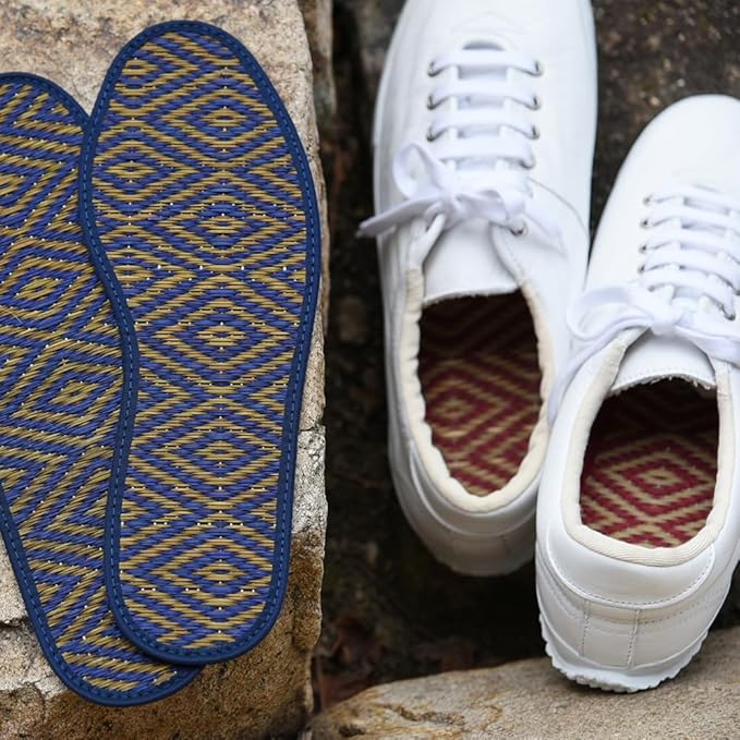 - ORGANIC INSOLES WITH NATURAL MATERIAL: We use igusa (Japanese soft rush grass) grown and cultivated in our own farm with minimum use of chemical substances for the material and ensure Japanese quality.