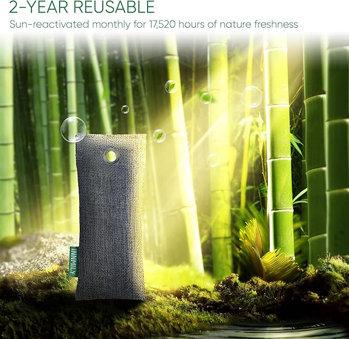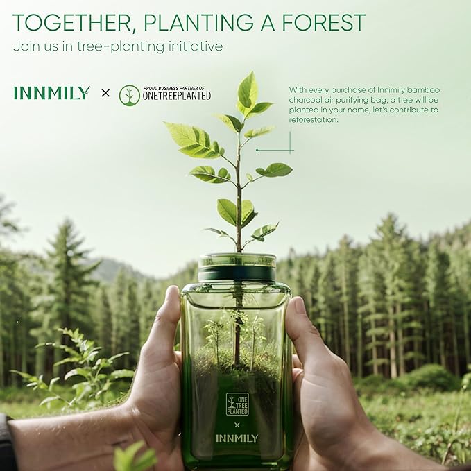 - TOGETHER, PLANTING A FOREST - We invite you to join us in tree-planting initiative - every purchase of Innimily bamboo charcoal air purifying bag, a tree will be planted in your name, let’s contribute to reforestation, aligning your well-being with environmental responsibility. natural solution that not only captures odors but also contributes to sustainability. Innmily bring nature and fresh air, we offer no question asked money-back, if you were not satisfied the charcoal air freshening bags