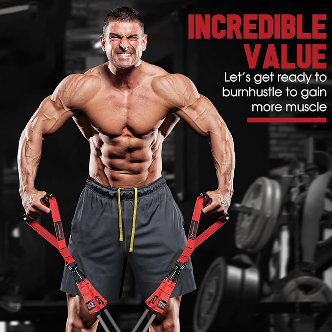 - SUPERIOR QUALITY EXERCISE BANDS: For maximum longevity and safety during use, the 47" long resistance bands are made of high-grade natural latex with high-density nylon webbing and sturdy heavy metal climbing carabiners that won't break or deform. Each tube fitness band is double-layered and carefully constructed to provide maximum resistance. making it more elastic and durable, safe, and reliable. Which can withstand intense daily exercise sessions and ensure your training goes perfectly