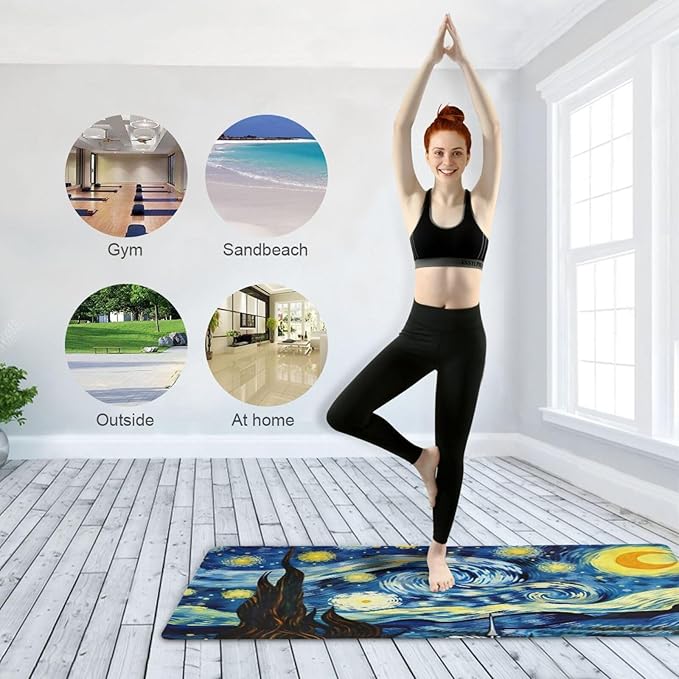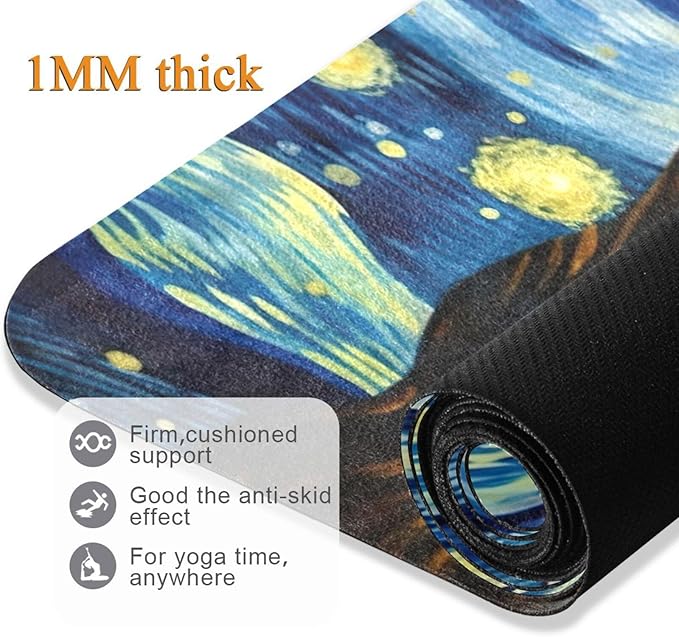 Starry Night Van Gogh Yoga Mat Non Slip Thick Pilates Fitness Mats Portable Exercise Mats for Home Workout Gym 71 * 26 inches