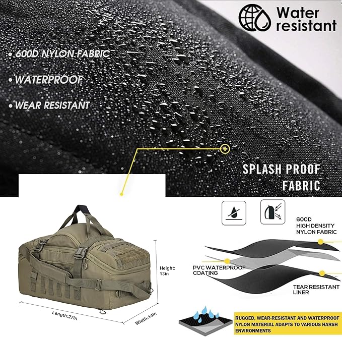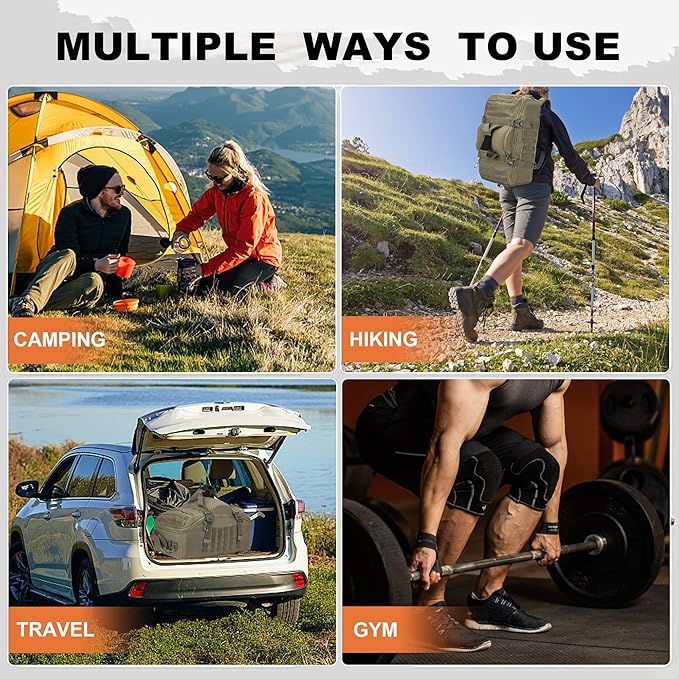 Gym Bag Duffle Bags Backpack Travel Duffle Bag with Weekend Overnight Bag for Outdoor Tactical Sports Travel Camping Hunting (Green, 80L)
